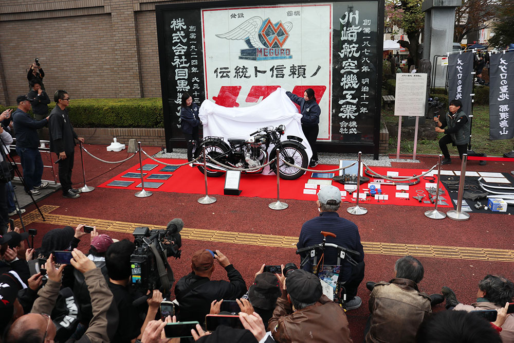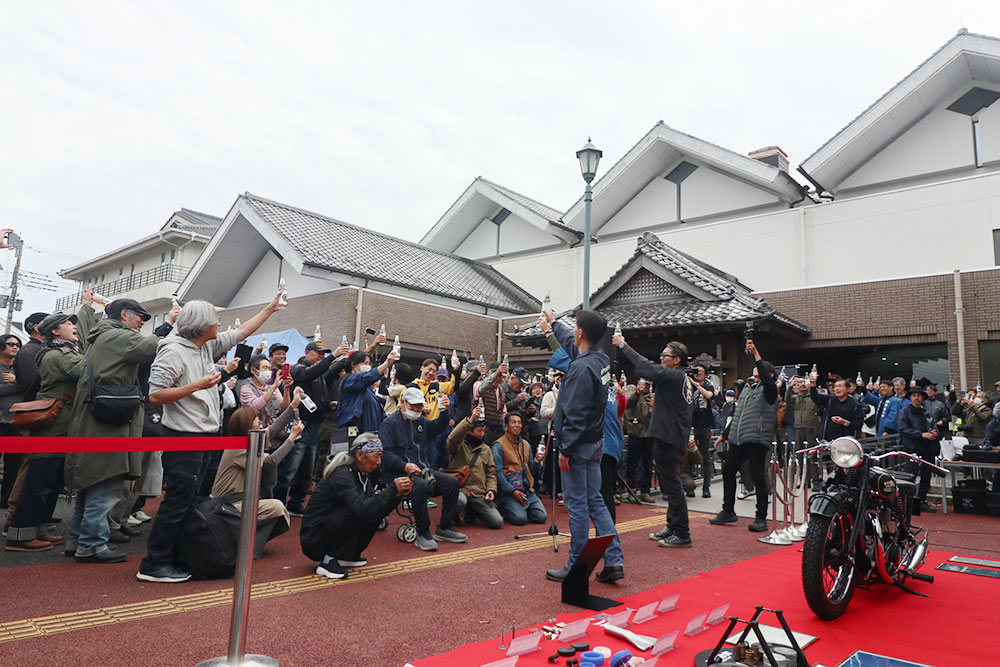 今回の目玉は、2022年より3カ年計画で進めていた那須烏山商工会 工業部会の14社から成る「メグロZ号レストア・プロジェクトチーム」で再生された「メグロZ」のお披露目でした。同モデルは1948年から1951年までのあいだに烏山工場で作られた部品によって製造された945台のうちの1台で、プロジェクトチームには烏山工場の元従業員が創業した会社も含まれていました。