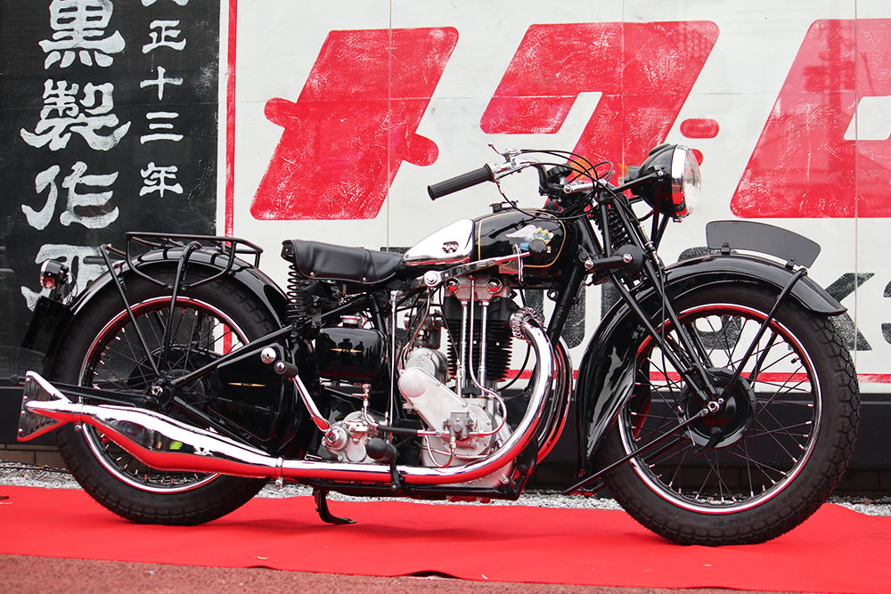 変速機メーカーとして高い評価を得た目黒製作所は、昭和7(1932)年に排気量498ccの空冷4ストローク単気筒エンジンを自社開発し、他の二輪メーカーに供給するようになります。そして昭和12(1937)年、満を持して自社初の完成車「Z97型」を発売しました。当時、500ccといえば大排気量クラスであり、しかもスポーツモデルからの参入は極めて稀でした。この記念すべきメグロ第一号車は、昭和14(1939)年に10台が警視庁に白バイとして登用されています。