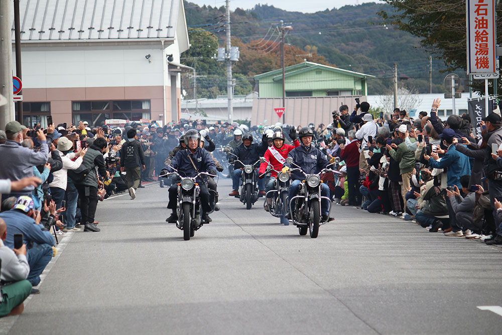 パレードの時間が近付いてくると、たくさんの住民の方々が沿道に現れ、今か今かと待ち構えます。那須烏山市そのものがライダーを歓迎しているかのような雰囲気が広がっていました。