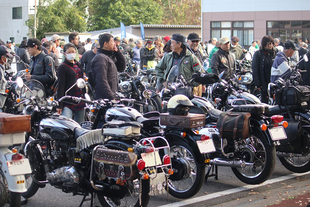 第5回となる今年は11月2日(日)に開催されました。主催者の発表によると、二輪車の入場台数は、2022年の第2回が237台(うち旧メグロは89台)、第3回は270台(同102台)、第4回は383台(同138台、うちメグロK3は54台)と、年々増加傾向にあり、今年は464台となりました。このうち新旧メグロは184台で、2024年11月に発売された「メグロS1」での参加台数は41台でした。