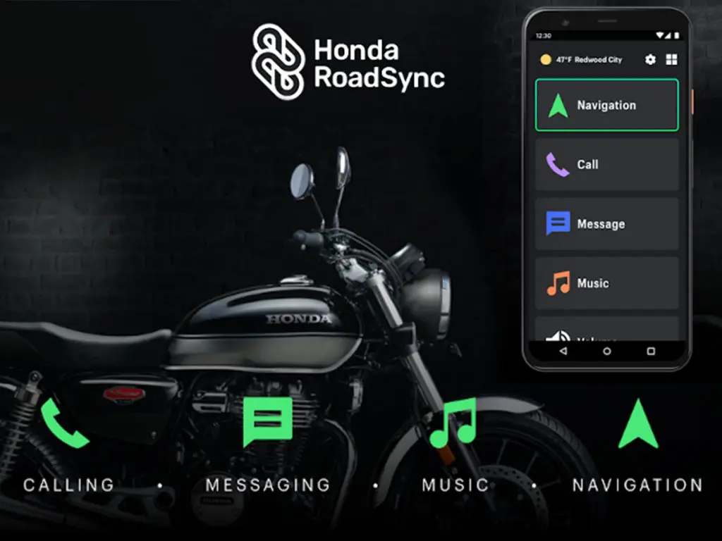 スマートフォンとバイクをBluetoothで接続して、スマートフォンに入っているナビゲーション、電話、メッセージ、音楽を、運転操作を妨げることなく利用できるシステムで、Hondaとグループ会社のDrivemodeで共同開発された独自技術です。