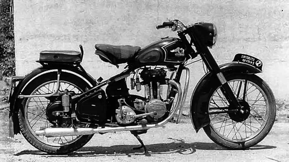 伊藤さんがバイクに乗るきっかけとなったのは「免許くらい取ってきなさいよ!」という当時の彼女からの一言。バイク免許を取得してから、伊藤さんが初めてバイクを購入したのは1957年のことで、4ストローク200ccの山内輪業・富士工業製「シルバースター号」(1955年式)の中古車を45,000円で手に入れました(大卒初任給が13,000円の時代) 。このバイクは、名古屋にあったホダカというメーカーの3速ミッションに、同じく名古屋の榎村製作所製エンジンが搭載された、正真正銘“メイドイン名古屋”のバイクでした。