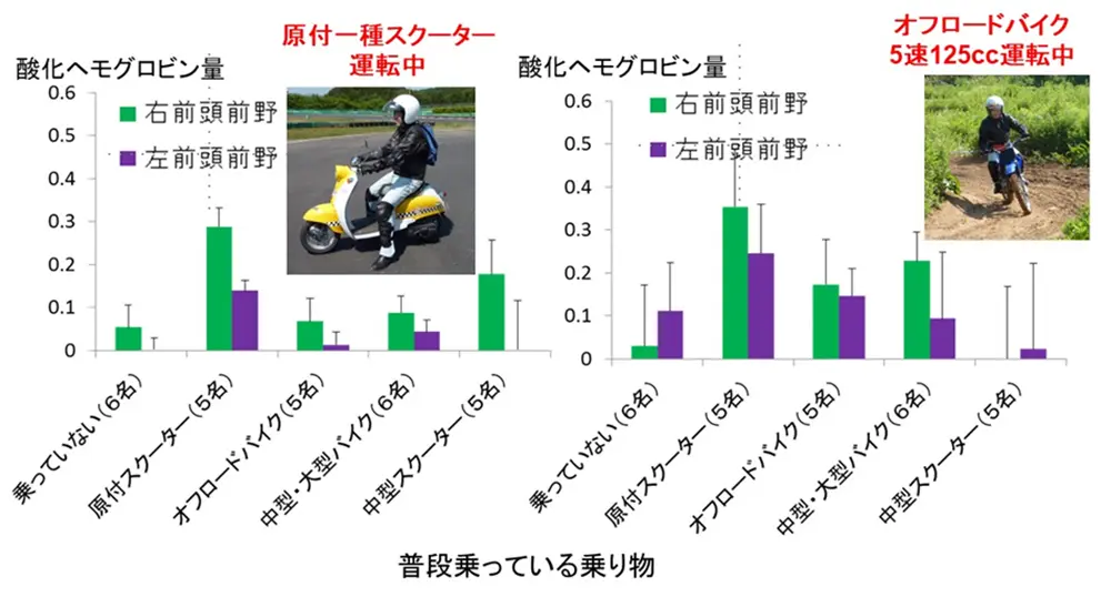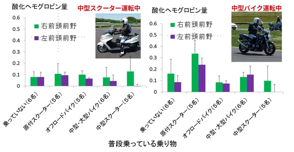 また、スクーター利用者でもひとたびバイクに乗ると、まるで呼び起こされたように脳の動きが活発になる面白い傾向も見られた。