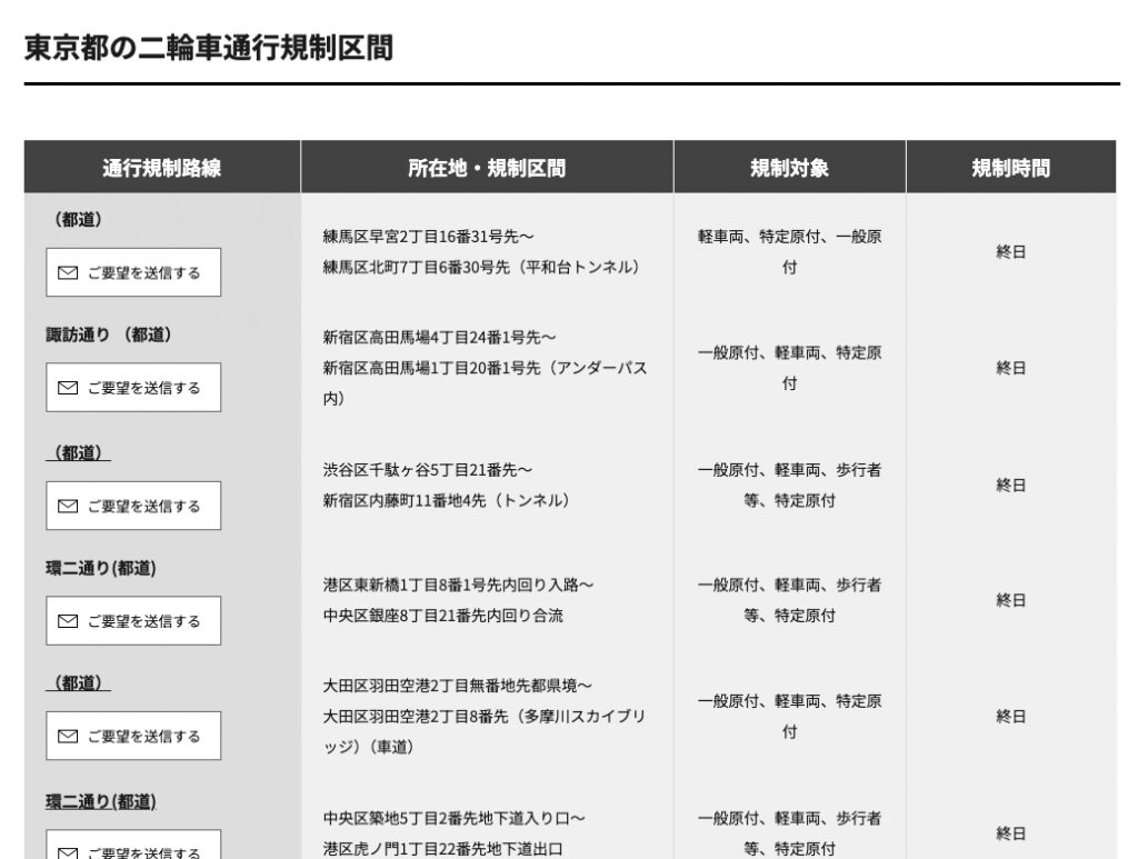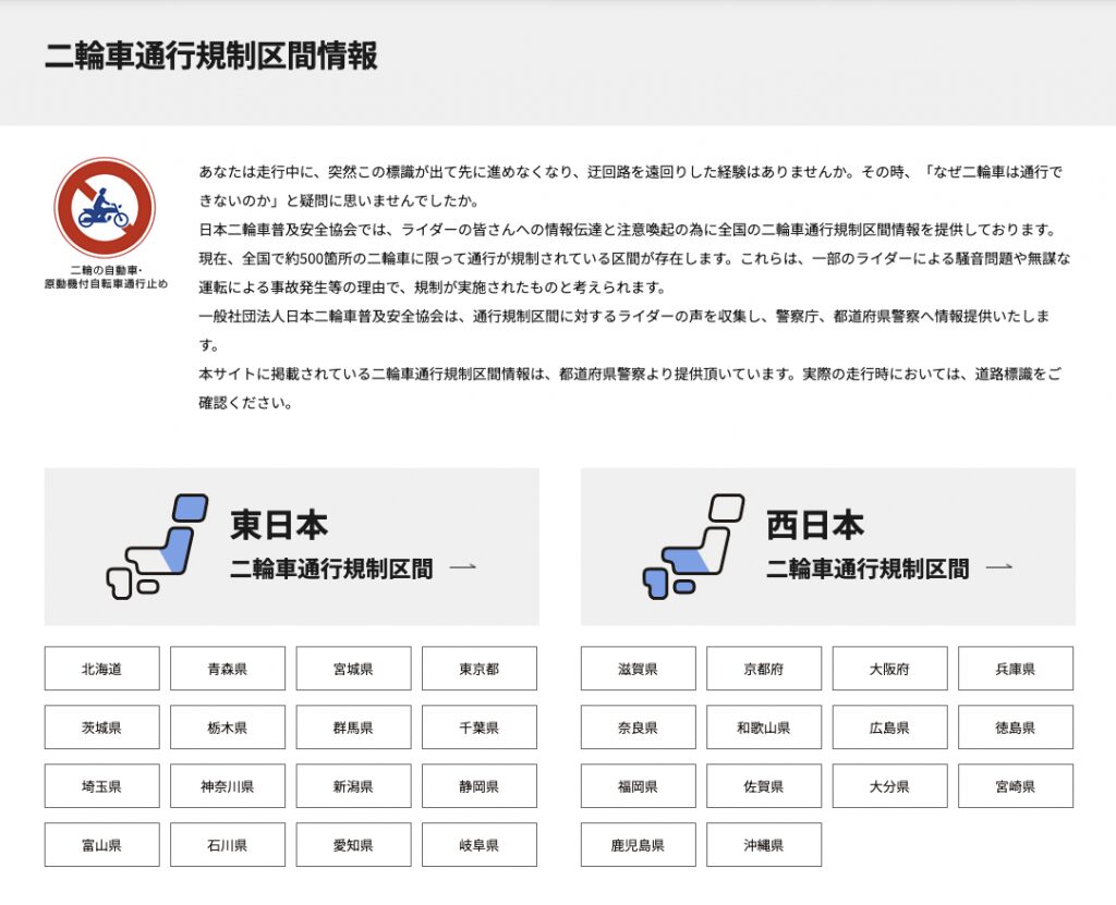 二輪車通行規制区間情報 | 一般社団法人 日本二輪車普及安全協会