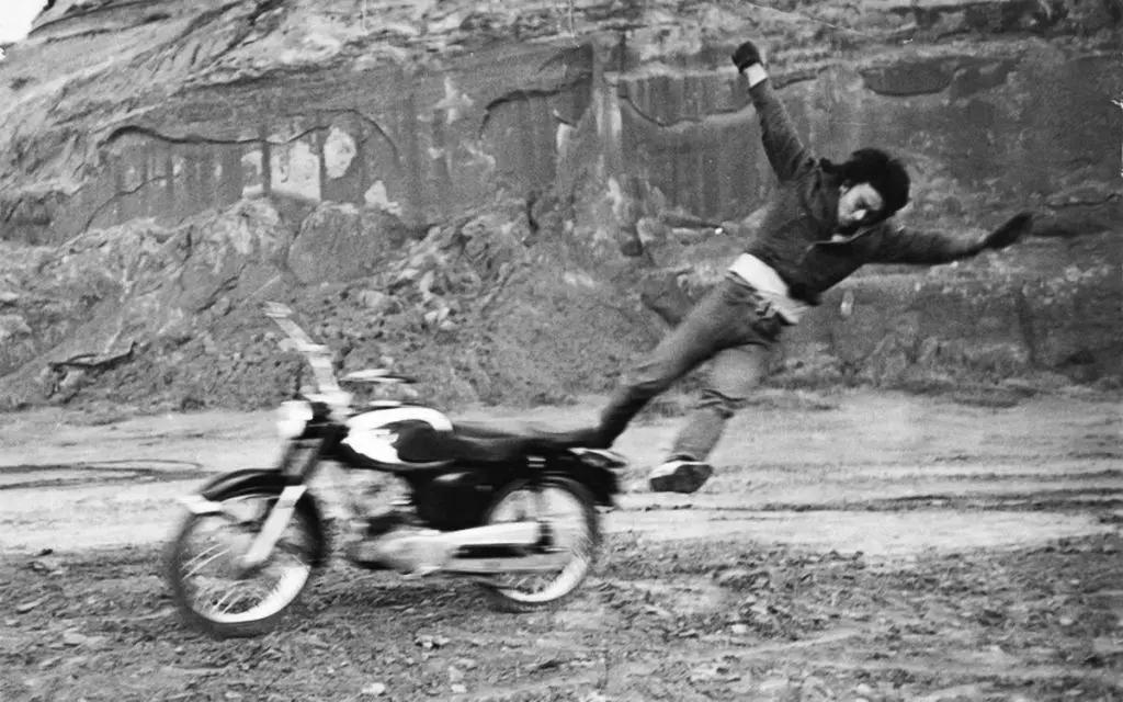つまり、ヘルメットの着用が義務化される以前は、ヘルメット未着用でバイクスタントを撮影することも多く、いくら経験豊富なスタントマンとはいえ実際の場面では制作側と念入りな下準備を要した。