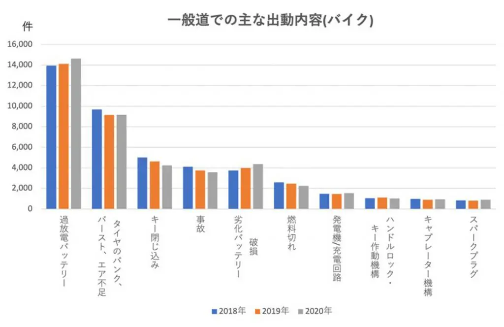 過去にMOTOINFOでは、一般社団法人 日本自動車連盟(以下、JAF)ご協力のもと、バイクについてのロードサービス出動件数についての情報提供をいただいたことがあります。