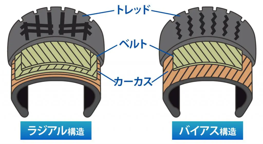 ※2:バイアスタイヤ=大きな荷重への耐性や悪路、低速走行に優れていることから、小〜中排気量モデルなどに適している