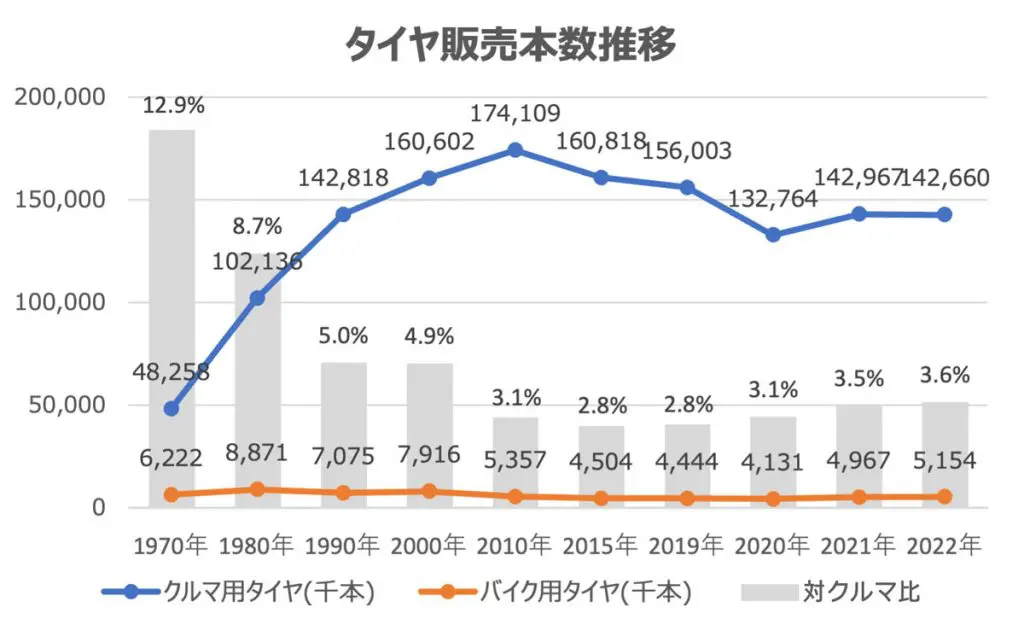 バイク用タイヤの販売数はクルマ用の1/10以下