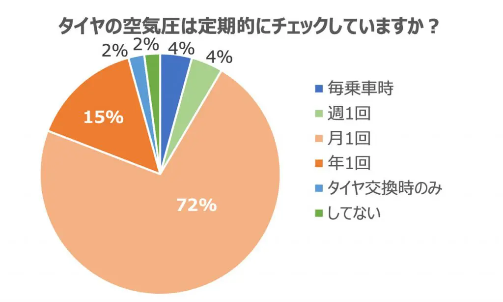 72%のライダーが回答した“月1回の空気圧点検”については及第点ですが、“年一回”、“タイヤ交換時のみ”、“していない”の合計が約20%、つまり5人に1人はタイヤのメンテナンスを怠りがちであるという結果が出ています。