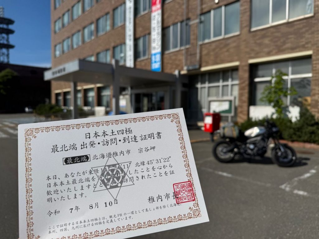日本本土四極それぞれは、ただの地理的な端点ではなく、ライダーにとって特別な目的地であり、走り抜いた道の記憶そのものが価値となる場所です。実際に訪れれば各地で証明書を手にすることができ、それは旅の証であると同時に、一生忘れられない記念品となります。