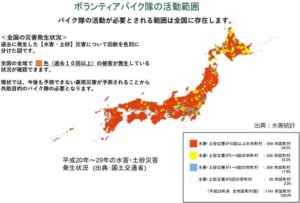 10年以上前に遡ると、災害時のバイク活用事例は数えるほどしかありませんでしたが、しかしながら、東日本大震災を境に全国で防災意識が高まり、最近では様々な形で行動を起こすライダーが増えています。