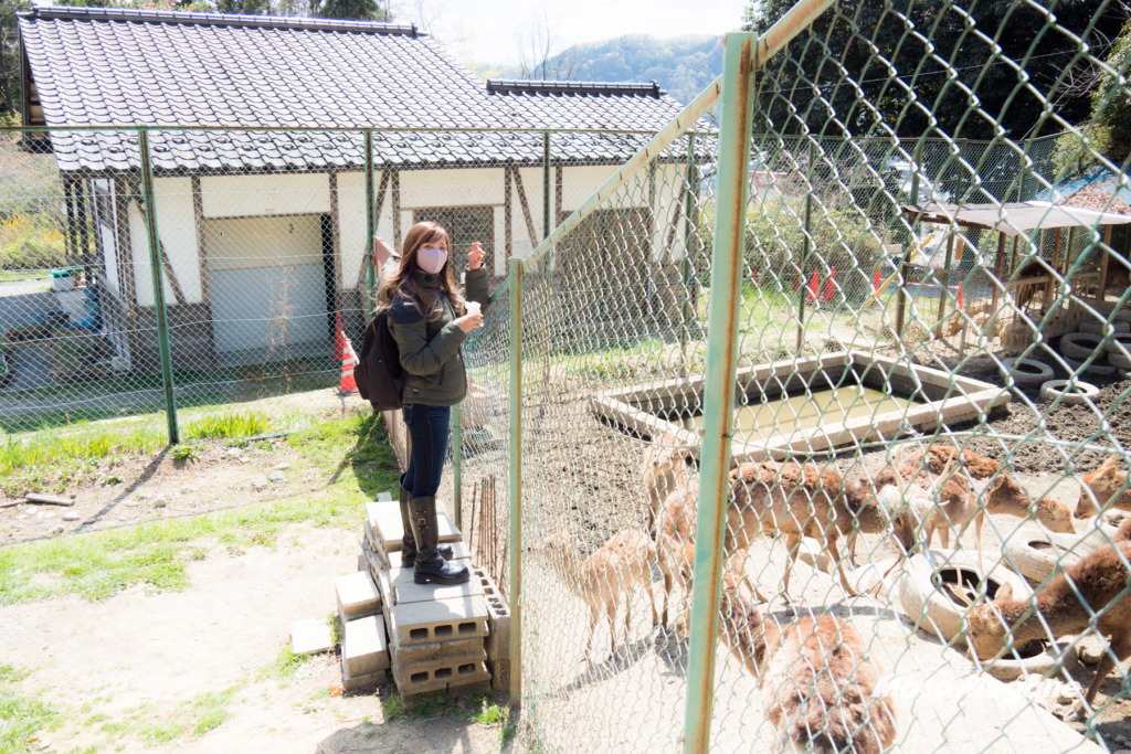 公園内には沢山の鹿が飼育されており50円で餌を買う事もできます。