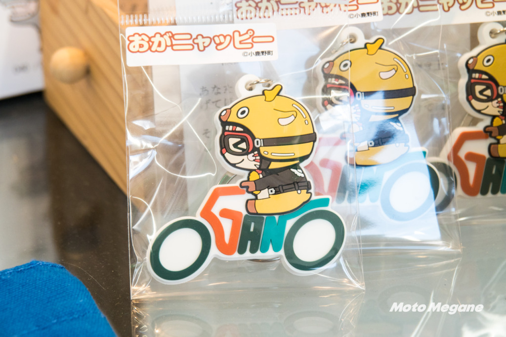 害獣として駆除される鹿の革を使った小物やウエルカムライダーおがのグッズが販売されています。
