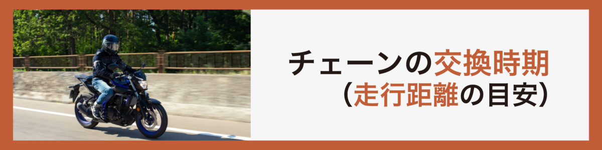 ただし、これはあくまで目安です。劣化のスピードは走行環境(埃っぽい場所や雨の多い地域か)などによっても左右されます。定期的にチェーンの張りを調整し、その際に交換するべきか確認をしましょう。