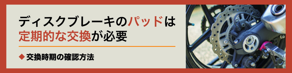 ディスクブレーキのパッドはバイクを走らせるごとに必ず消耗していきますが、交換時期の見極めは目視確認もしくは走行距離ごとに確認することが基本となります。