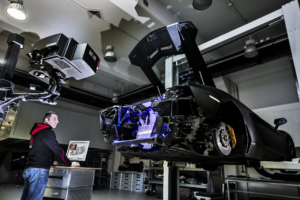 ここでは、4輪・2輪問わず、車輌をそのまま部屋に入れてノーマル車両のデータを取る部屋。スキャンしたデータはCADに落とし込み、大まかなデザインを決める。