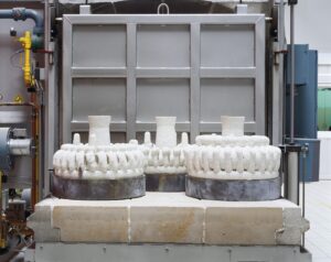 ロストワックス鋳造製法とは、蝋で原型を作り周りを鋳物砂や石膏で覆い固め、加熱により中の蝋を溶かし出して除去することによってできた空洞に溶かした金属を流し込み原型と同じ形をした鋳物が出来上がるもの。
