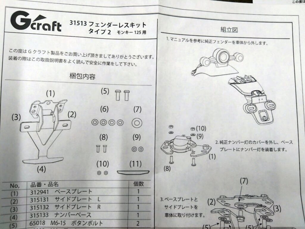 フェンダーレスはGクラフトさんのヤツにしました。なぜなら……かっこいいから(笑)