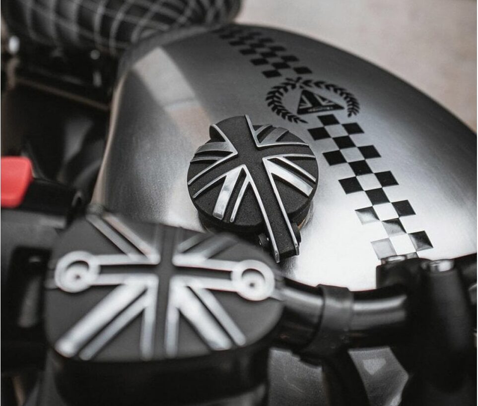 モンツァキャップとは1940年代のレースシーンで流行したフリップアップ式の給油口。鍵穴がなくスプリングによる開閉のためスムーズな給油を可能にします。キャップ部分は強度と精度に優れた高圧ダイキャスト製。