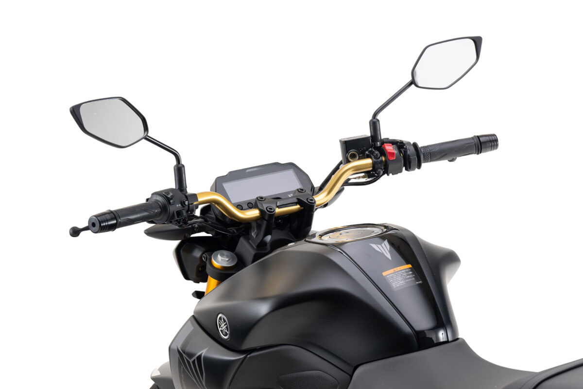 移動量7mmUP/7mmBACK ブレーキホース、ケーブル類は交換が不要です。純正ハンドルバーエンドは使用できなくなります。EFFEX ハンドルバーウエイト(内径Φ14)をご利用下さい。