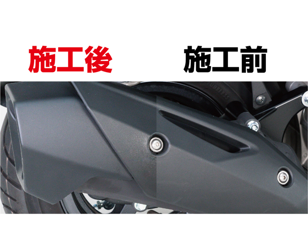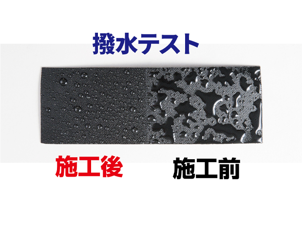 フッ素と専用調合した撥水成分をガラス成分に配合することにより、未塗装樹脂表面に黒々とした光沢と撥水性を与えます。また、長期に渡り汚れと劣化からガッチリ守る高い防汚性を発揮します。