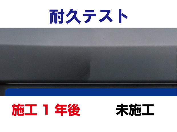 専用設計のガラス質被膜は、樹脂に浸透&密着しますので、水性・油性の保護艶出し剤のように洗車で落ちてしまったりすることがありません。また、酸化劣化しないので、その艶と保護効果を約1年間に渡り維持します。