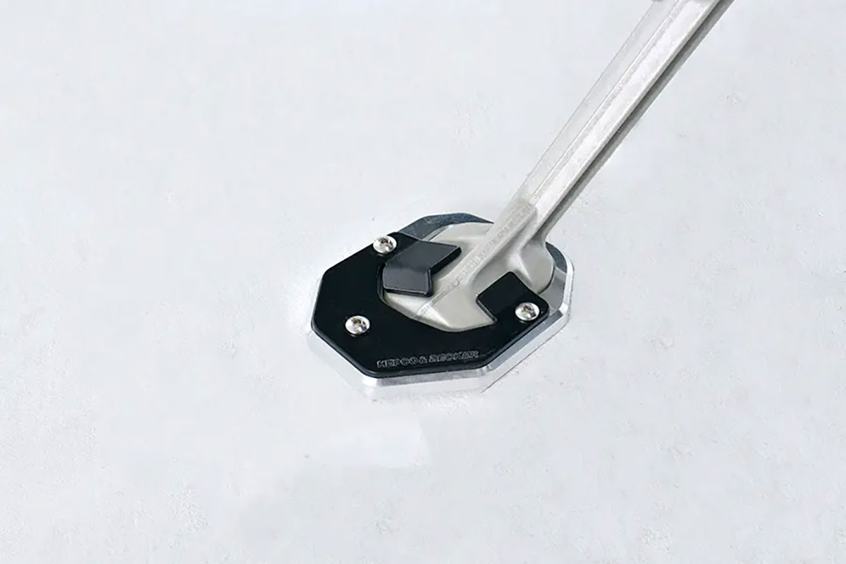 サイドスタンドの接地面積を増やすことで、不整地に停めたバイクのサイドスタンドが地面めり込んで・・・気付いたらバイクが倒れてるなんていうアクシデントを防ぎます。