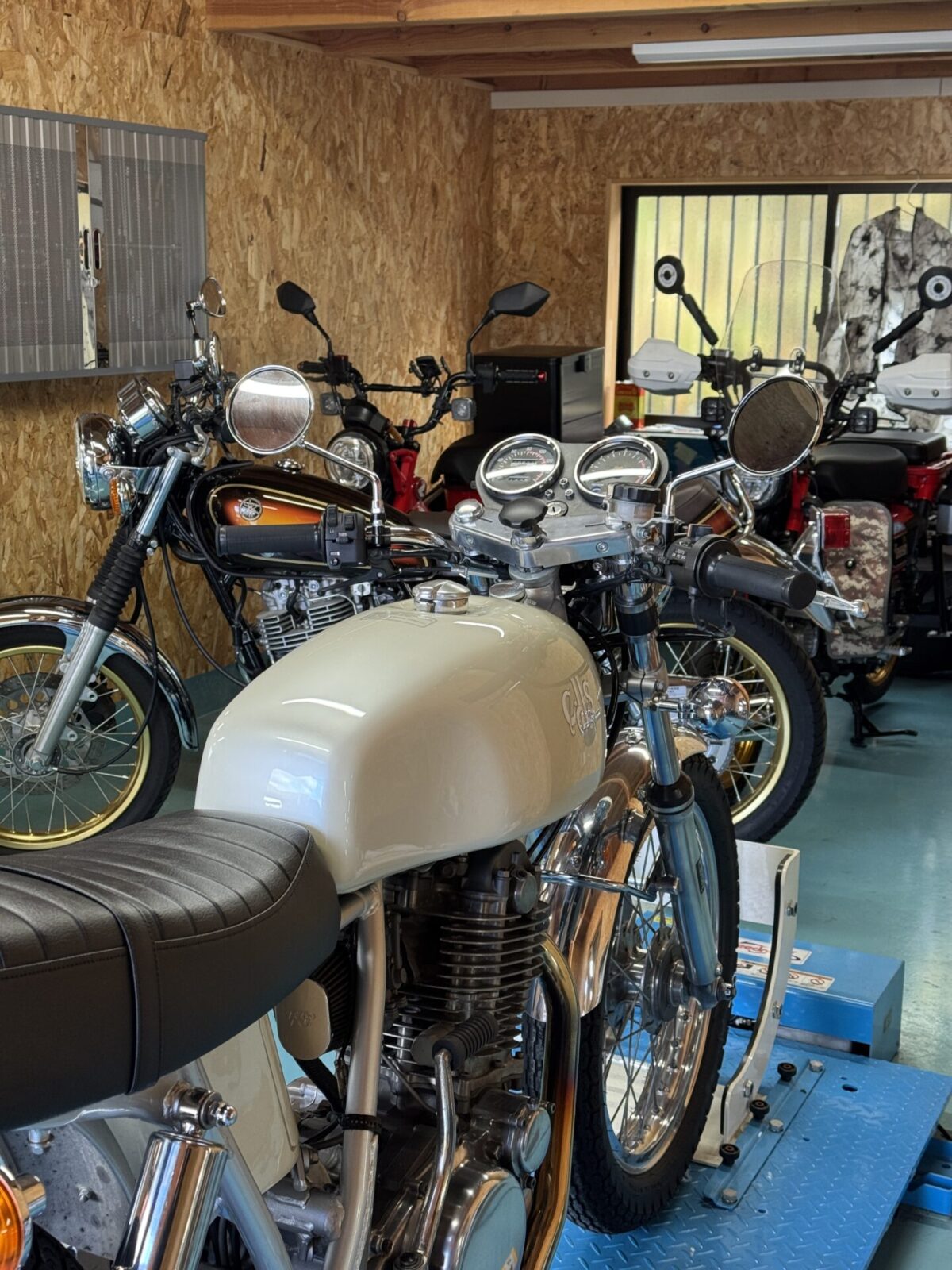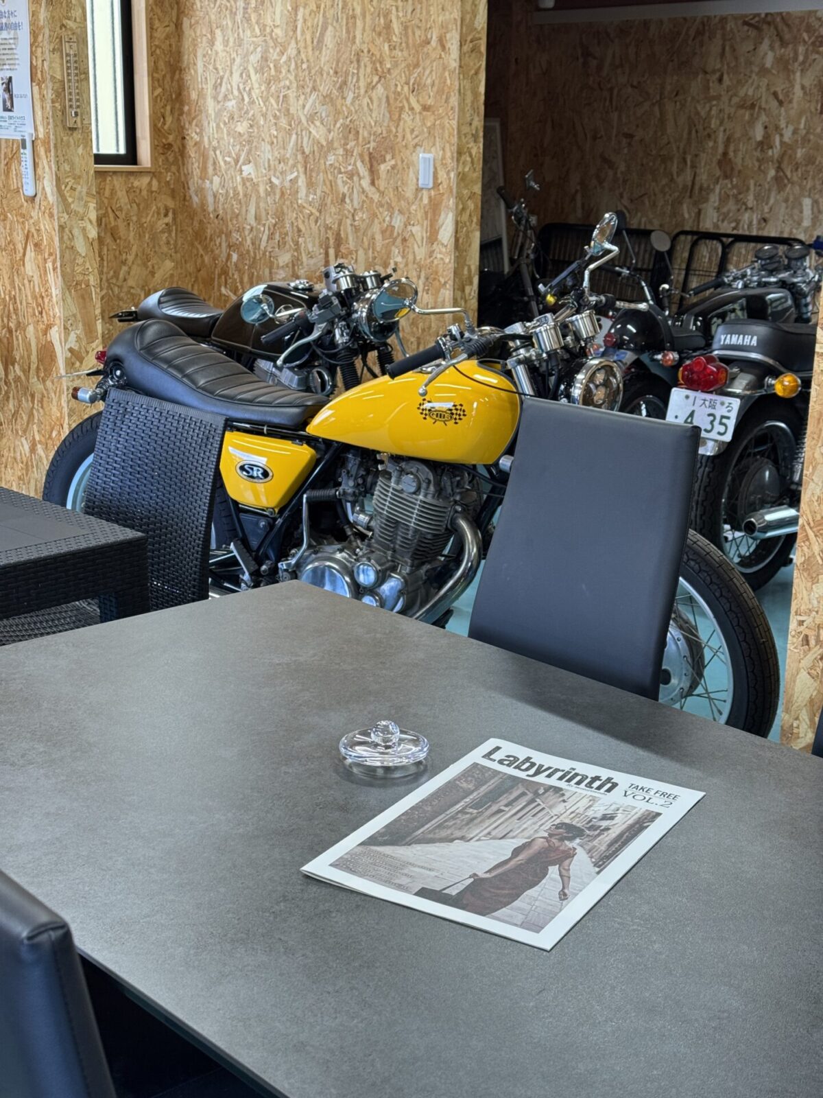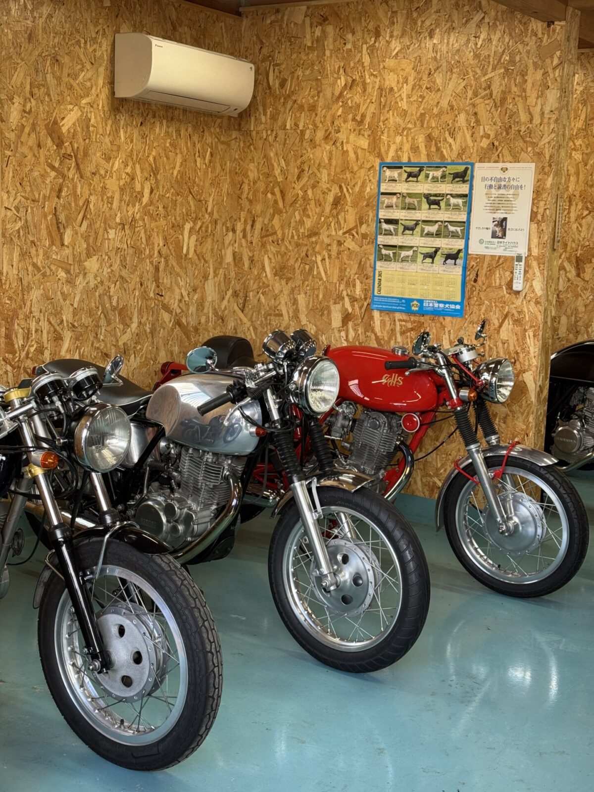このR477のオーナーさんもバイクがとても好きで、その中でもヤマハのSRシリーズが好きで、カスタムが施されたたくさんのSRがありました。