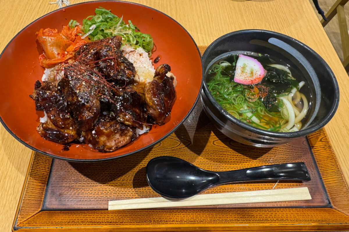 鈴鹿パーキングエリアでは、ぼつ焼き丼というものと、うどんを食べて、身も心も沁みました。