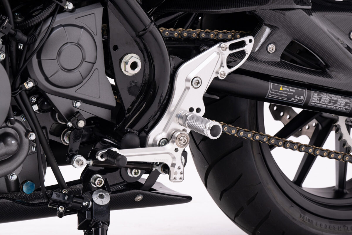 そこで停車時の足つき性を改善できるエフェックスローダウンキット(約15mmダウン)。スプリングを交換するだけで少し車高を下げる事でき、大きな安心感を得る事ができます。