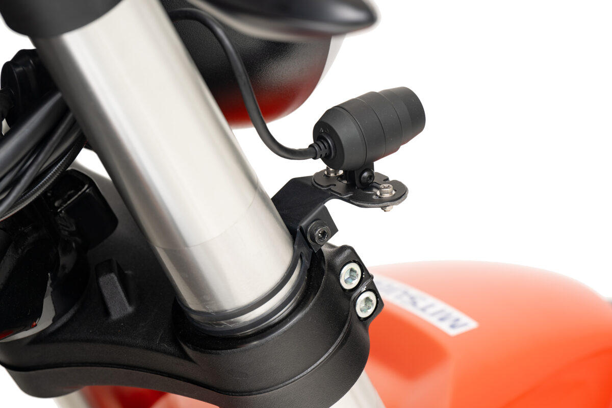 ドライブレコーダーのカメラをフロントフォーク部分に簡単確実取り付け「ドラレコカメラステー」。PLOT (プロト ETC&ドラレコステー) ドラレコカメラステー フォーククランプタイプ φ49-φ54