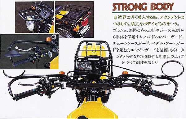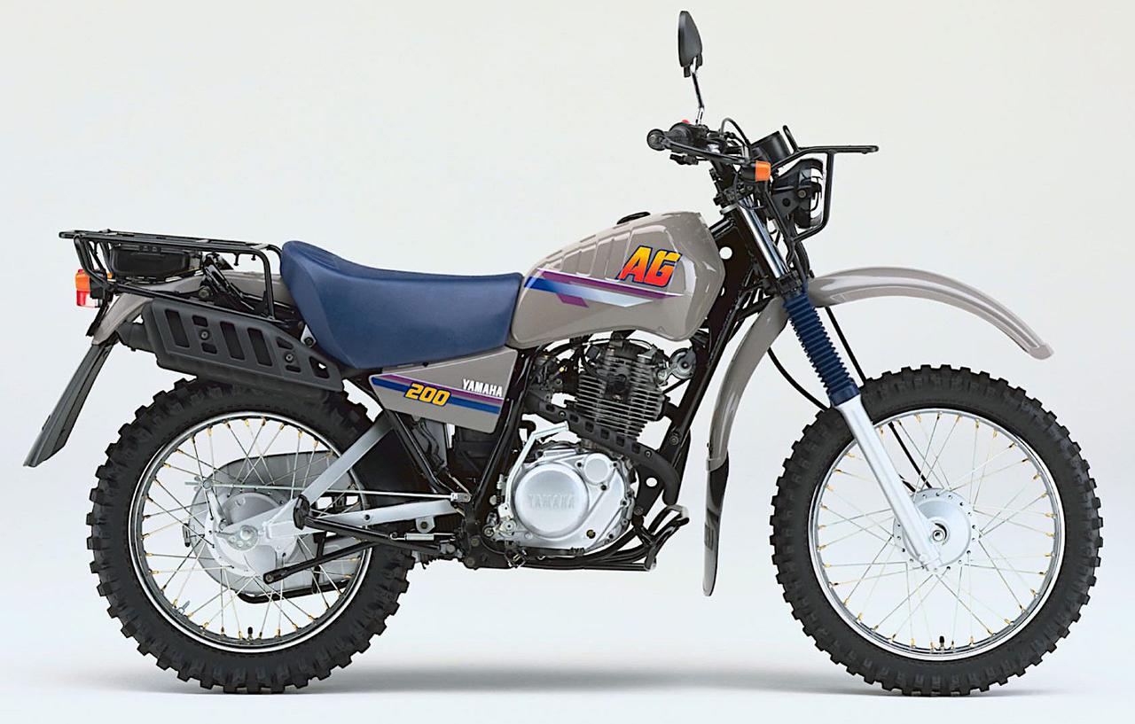 エンジンは空冷4ストOHC2バルブ単気筒、ボア×ストローク67×55.7mm/最大トルク1.5kgf・m/6500rpm/最高出力14.3PS/7500rpm。スピードよりも、タフさと粘り強さが与えられています。ダートバイクと言えども一般道の走りやすさが求められますが、AG200は仕事を遂行することに徹底。国内でも販売されていましたが、売れ行きはサッパリでした。