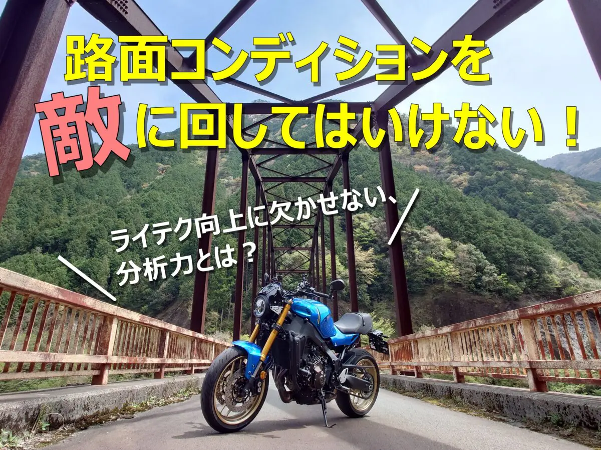 タイヤの状態、路面の状態把握はライディングの基本と言っても過言ではありません。あらゆる状況下でも安心してライディングが楽しめるよう、路面コンディションの分析してみてはいかがでしょうか。