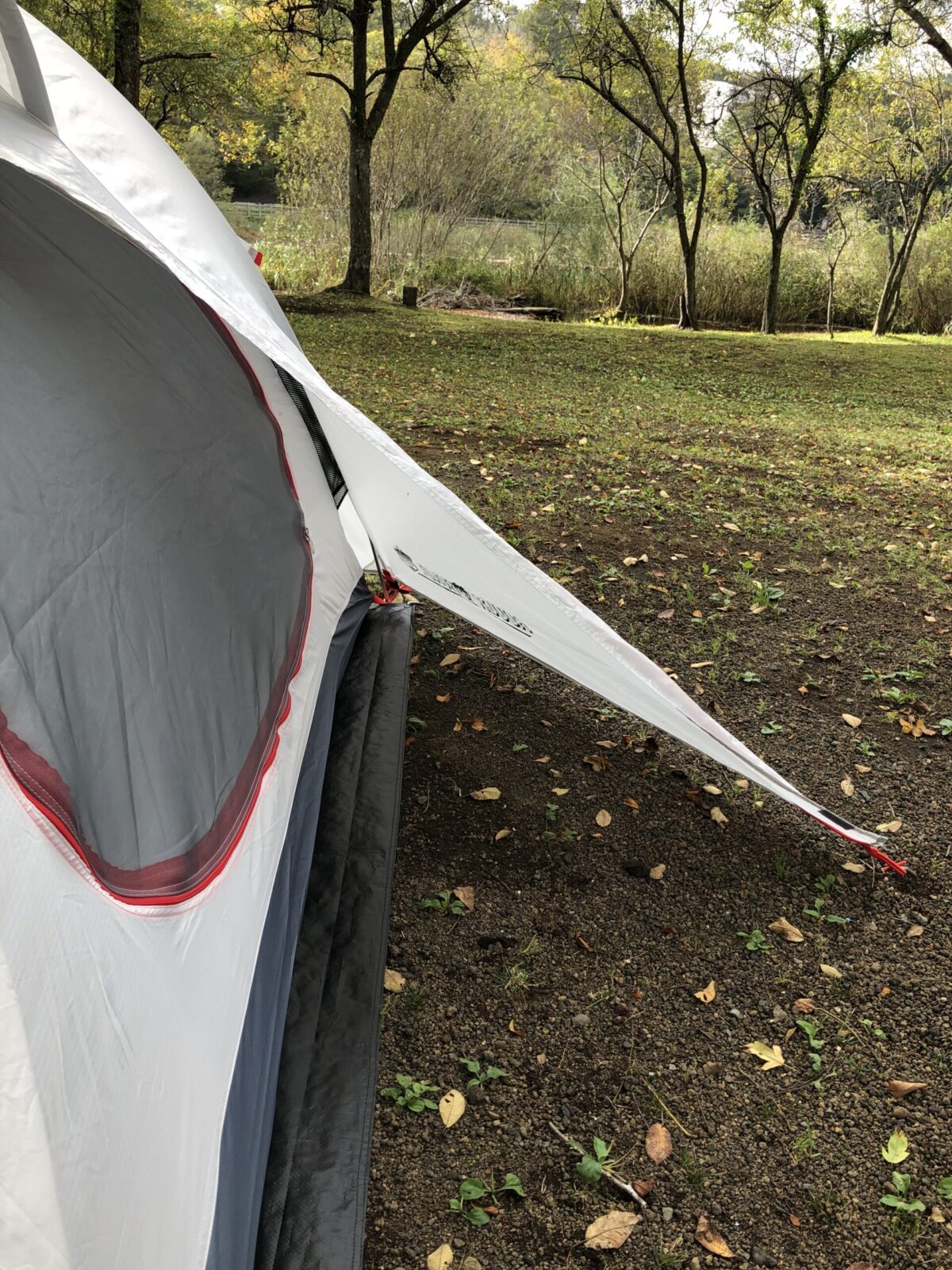 動画でもあった通り、設営方法はいたって簡単で本体に2本のアルミフレームを通してフライを被せ、ペグダウンするだけ。セット重量は2.8kg。
