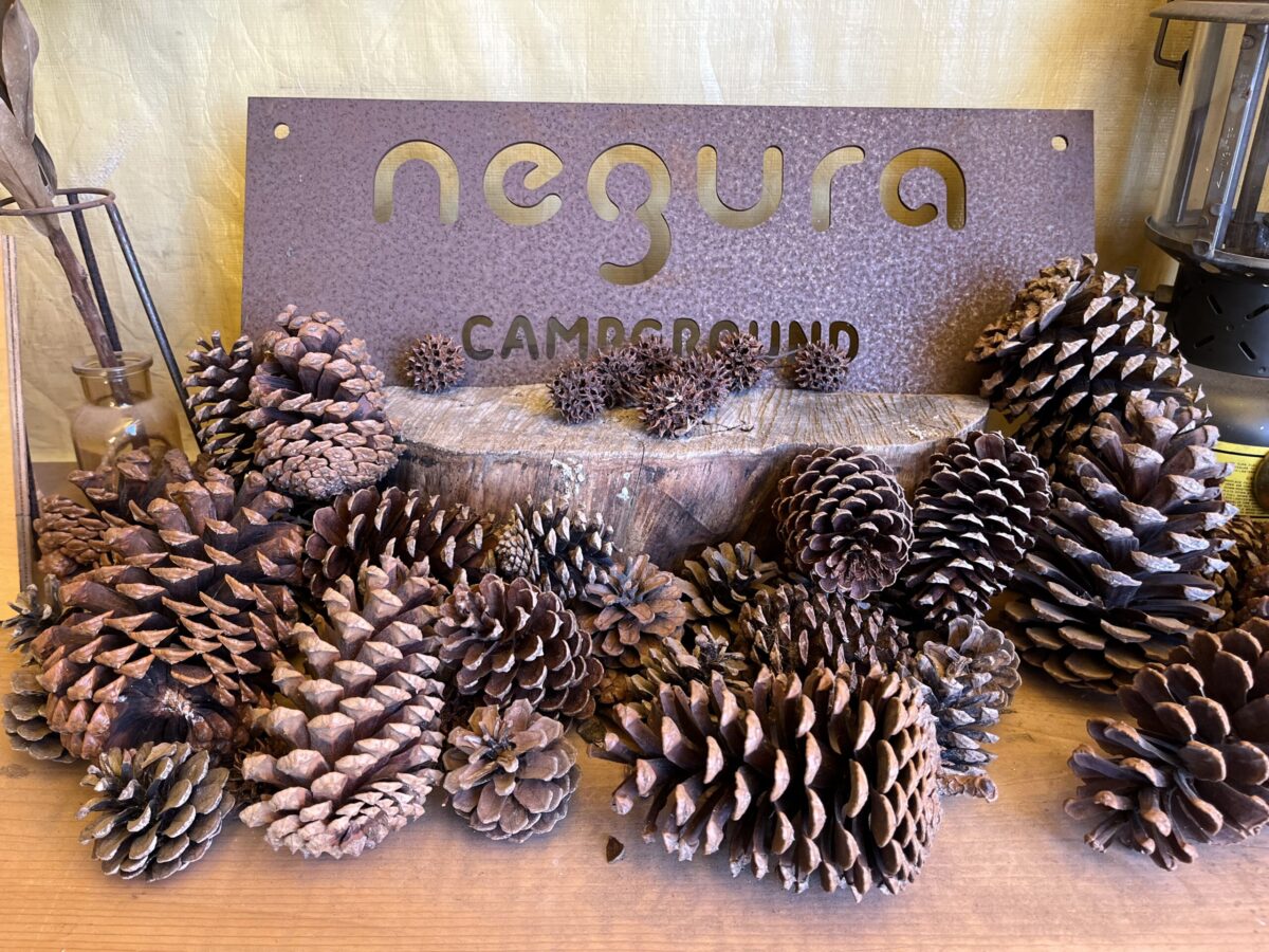 サービスで焚き付け用巨大松ぼっくりがついてくる薪の量り売りや超キレイなトイレと水回り、ちょうどイイ所に配置された直火ピットなど、キャンパーである腱さんの想いとコダワリが詰まったキャンプ場で未だ現在進行形で進化拡大中です。