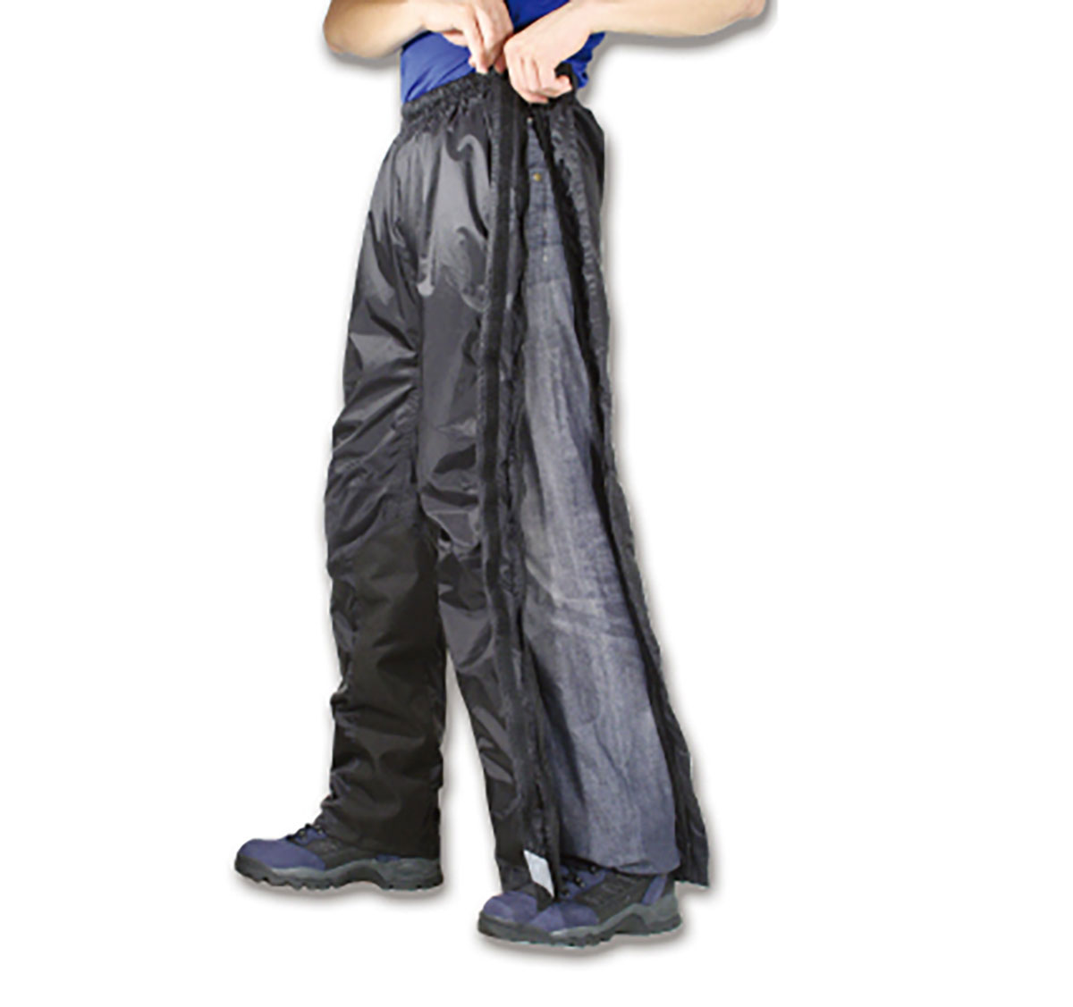 また室内だけでなく屋外でも脱ぐ必要がある場面の多いバイクではシューズを履いたまま脱げる、サイドファスナーでフルオープンするもの( RR7851 デュアルテックスサイドオープンレインパンツ)や裾が大きく開くものが便利です。