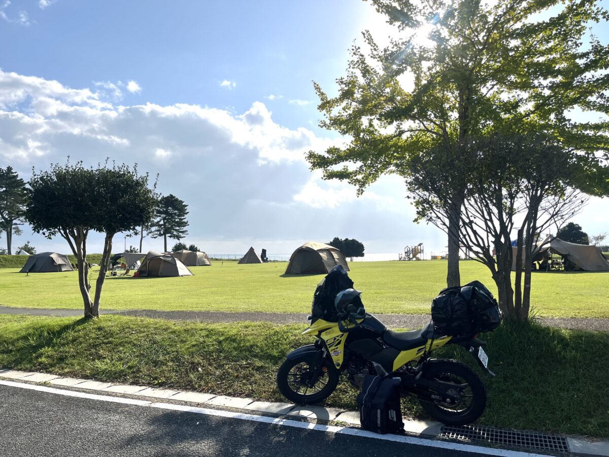 久々の地元青森滞在から出発し東北道をどんどん南下。行くときとは逆に気温が高くなるのを実感しつつ、去年のSSTRの出発地として選んだ福島県は楢葉町の天神岬スポーツ公園キャンプ場へ。