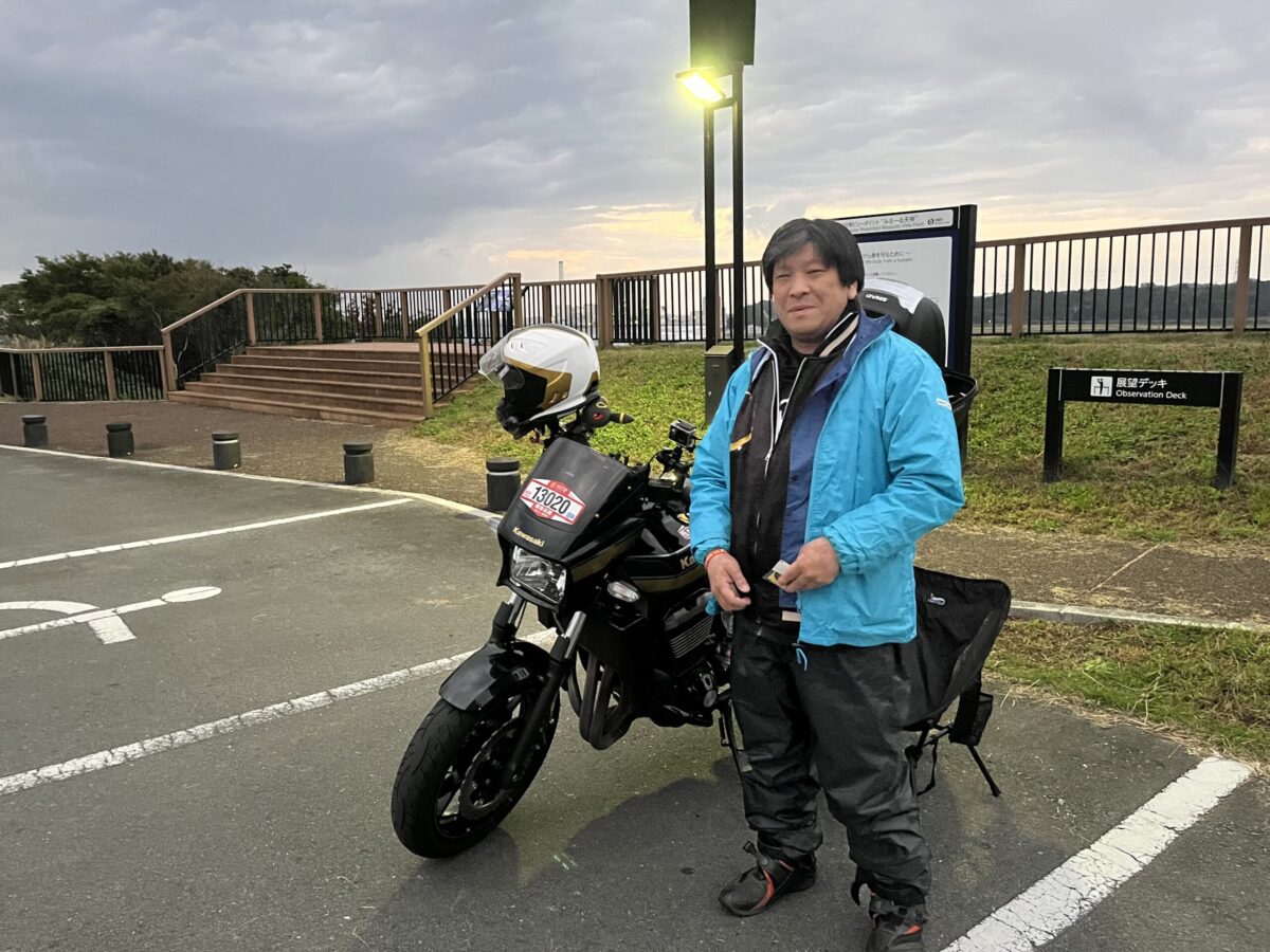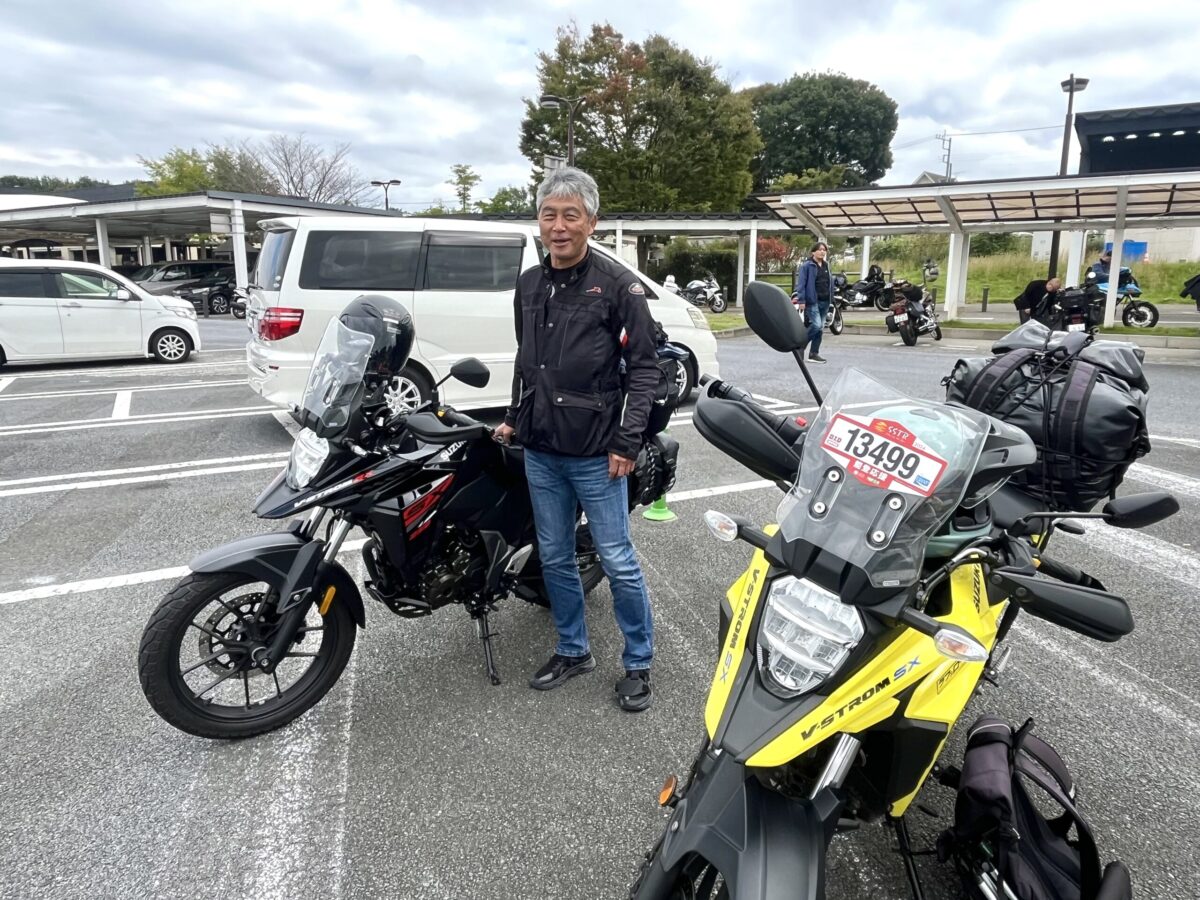 聞くと前日開催されていたみちのくアドベンチャーラリーに参加して仙台に泊り、夜明け前に出発して来たけどちょっと遅れた、とか。そしてこの日はSSTRに参加しつつ名古屋まで千里浜経由でかえるんですwwって、いきなり距離感バグってる超猛者に遭遇!