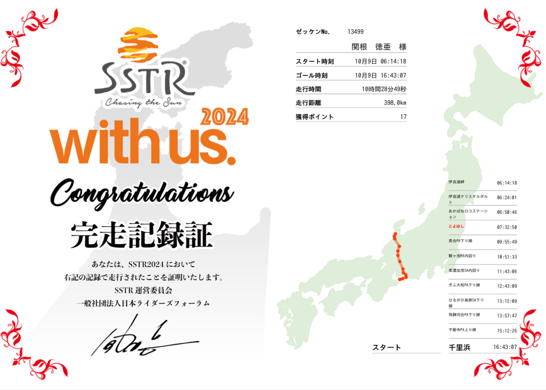 これにてラフ広報セキネのSSTR2024からの東北旅、走行距離約2650kmの旅は終了いたしました♪