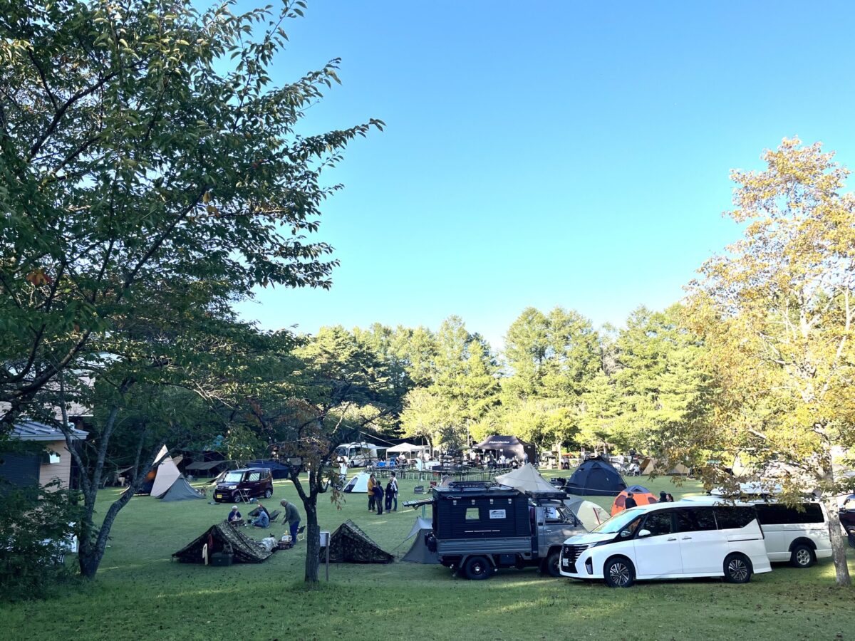 60組の募集は早期完売し別サイトに設営、参加されている方もいたとか。ブッシュクラフトや中村畳工店のワークショップ、サウナにコンサートにラーメン店やチーズ屋さんの出店と、ともすればカオスになりがちなイベントも赤坂社長のご家族や広報の小山内さん、その他スタッフやキャンプ仲間たちのおもてなしの心で来場者みんなが笑顔の絶えないアットホームなイベントになっていました。