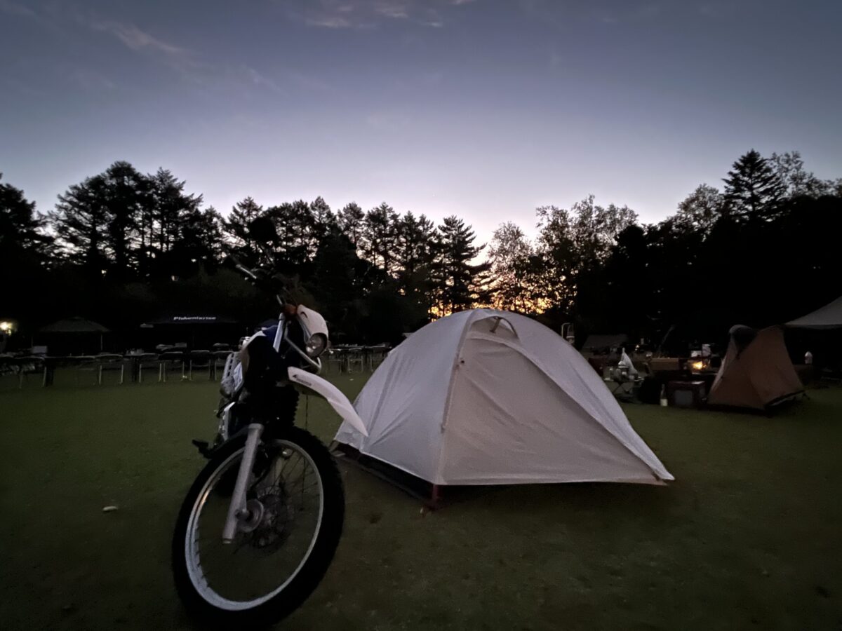 東の空が白むころ、気温13℃。雨も降らずにラフツーリングテントと薄手シュラフ、プリマロフトインナーなど着込んで十分対応できましたが、多分、東北でそれができるのは9月末まででしょうねぇ。