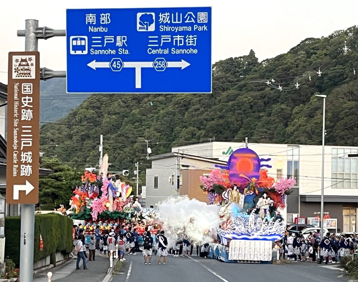 コチラの「道の駅さんのへ」の写真、今年のツーリングマップル東北にご掲載いただき、それを見て撮影にくるライダーが増えたとか♪ 嬉しいことですね~。ちょうどその日は地元の三戸まつりの初日で華やかな山車が懐かしい囃子とともに、市街地を練り歩いているのにも遭遇、ちょっと得した気分で帰省できました。