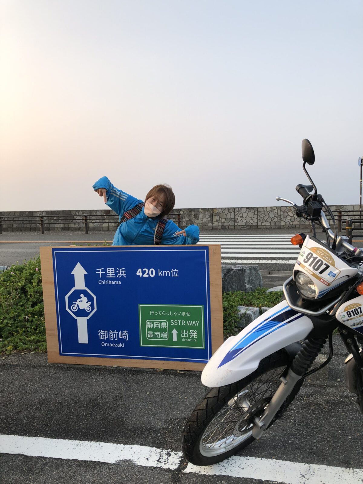 御前崎出発のSSTRライダーにはすっかりお馴染みになった、この看板の作成娘として撮影させてただいており、この方が実は有名なお宿なかにしの女将さんだと一致したのはつい先日のモーターサイクルショーの時(汗)