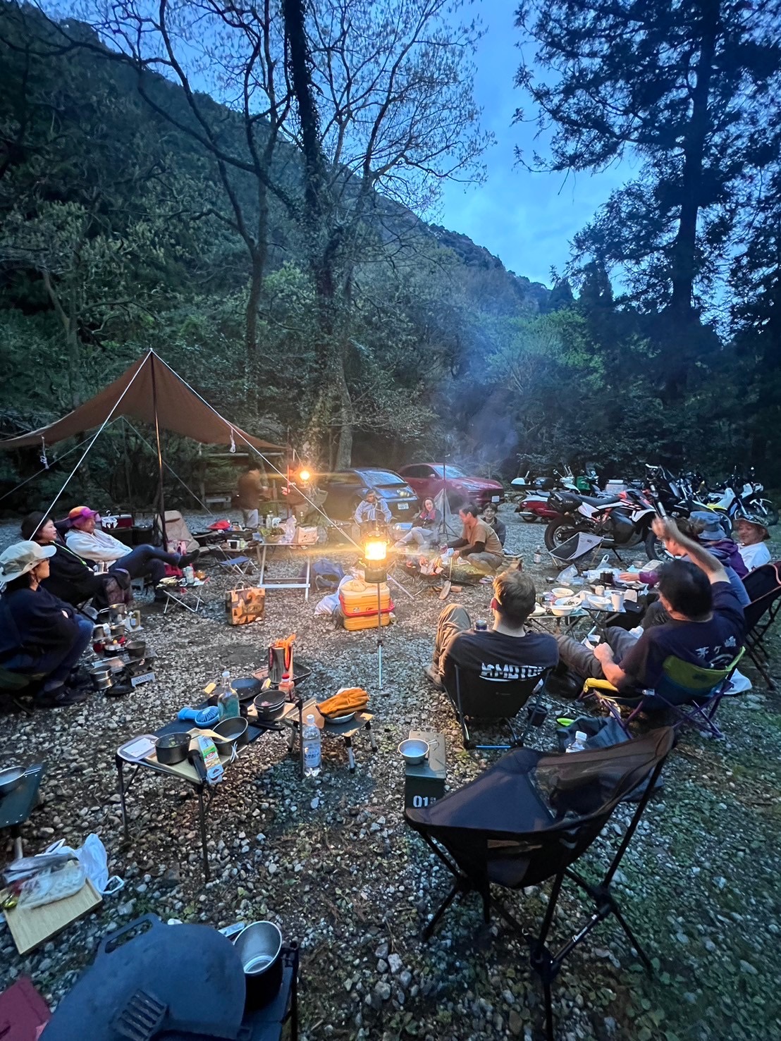 夜中に雨が降りましたがそれまではご覧のように気の合う仲間たちと楽しく過ごさせていただきました。