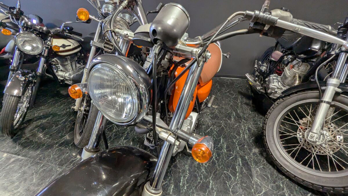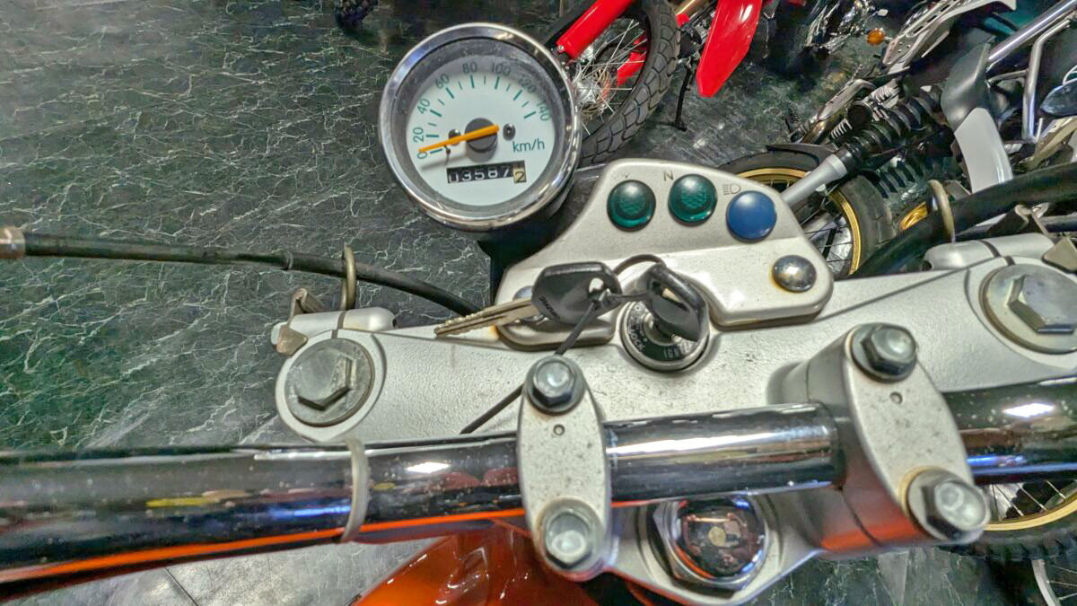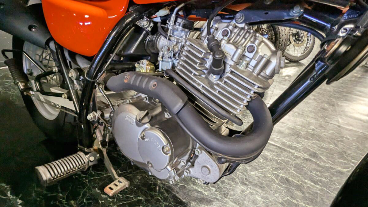 取材に協力いただいたショップのバンバン200は、オレンジの車体にサビはなく、センス良くカスタムされています。ダートモデルのジェベル200やDF200に用いられていたエンジンを減速比を変えて搭載。排気量199cc・空冷4スト単気筒・最高出力16馬力。街乗りに最適なスペックです。