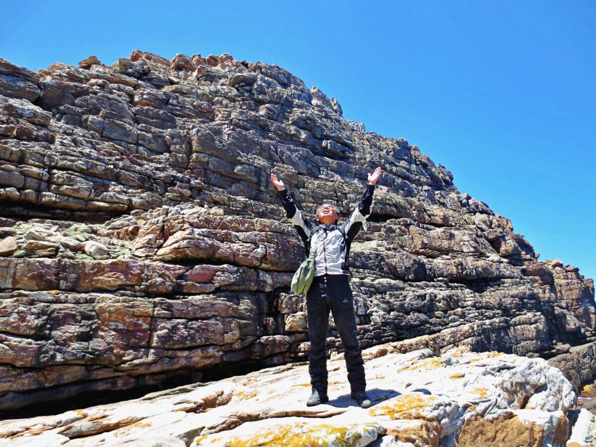 アフリカ最南端・アグラス岬に立つ