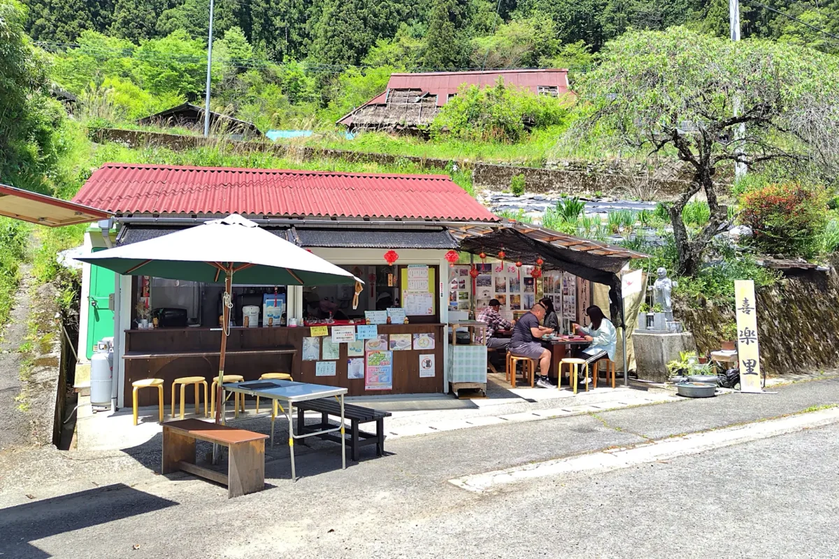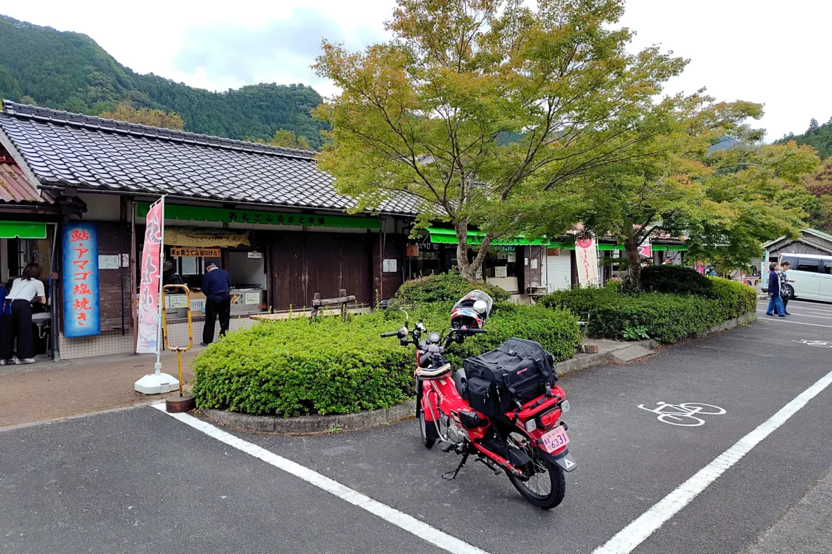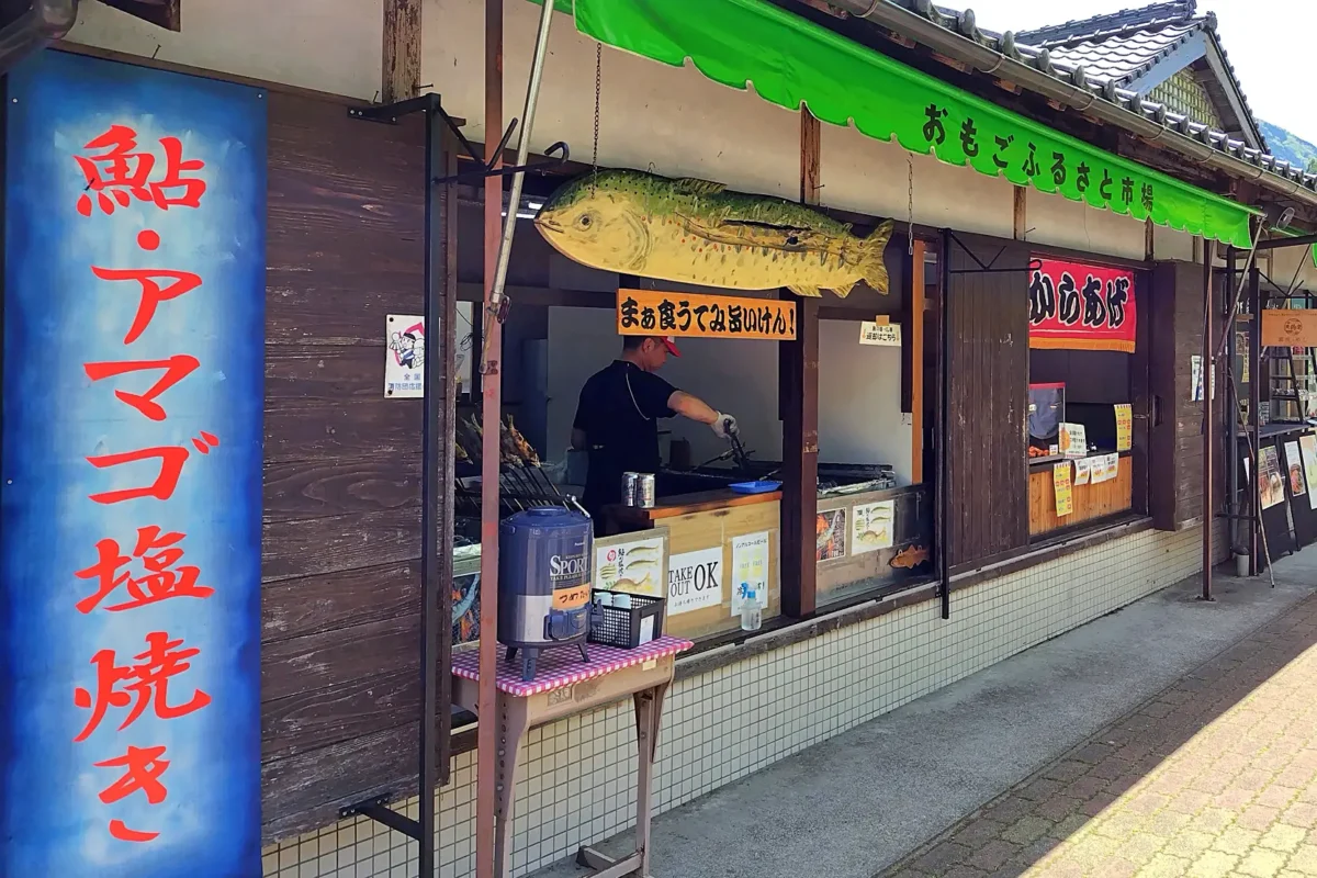 中でも「おもごふるさとの駅」(ツーリングマップル中国・四国 P.76 G-7)は飲食店と特産品店6店舗が集まる、「道の駅」的な施設。