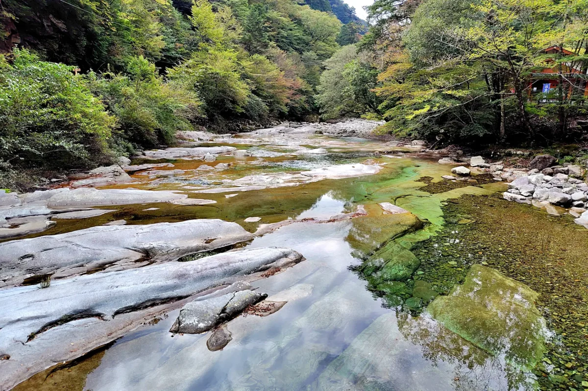 渓谷と紅葉の風景が素晴らしい、面河渓へも立ち寄りましょう。