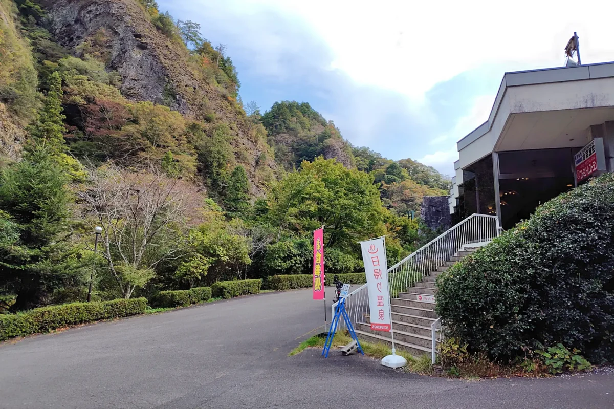 【国民宿舎 古岩屋荘(ふるいわやそう)】 温かいもてなしが嬉しい国民宿舎。岩風呂の温泉も心地よい。雨や夜露の心配がない、半地下に駐輪可