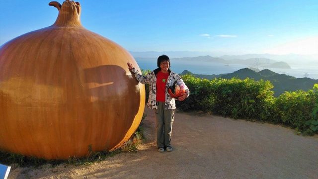 ▲玉ねぎオブジェ「#おっ玉葱」ハッシュタグをつけて投稿しよう!(うずの丘 大鳴門橋記念館)
